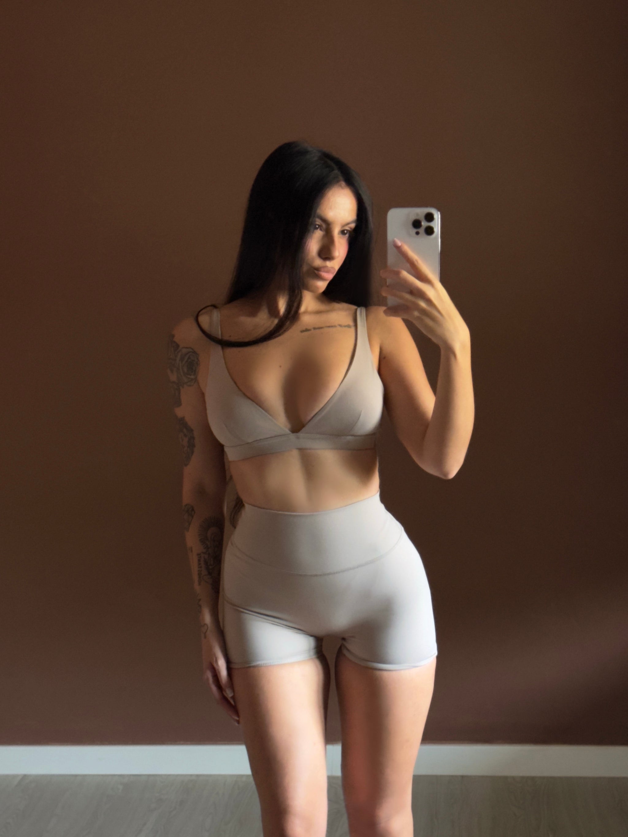 Il tessuto ultra-morbido al tatto avvolge il corpo come una seconda pelle mentre l’elastico sotto seno sostiene il décolleté.